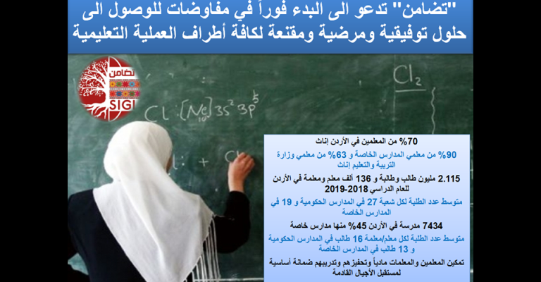 تتابع جمعية معهد تضامن النساء الأردني بقلق كبير مجريات الأحداث الأخيرة المتضمنة إغلاق نقابة المعلمين وإعتقال عدد من أعضاء النقابة وفروعها، وعدد آخر من المعلمين والمعلمات، في الوقت الذي تؤكد فيه أن