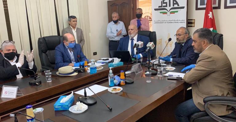الغت جمعية وكلاء السياحة والسفر في الأردن الاعتصام الذي كان مقررا اقامته امام وزارة السياحة والآثار اليوم الاحد، فيما عقدت مؤتمرا صحفيا في مقر الجمعية أعلنت فيه عن 8 مطالب. وجاء الغاء الاعتصام اليوم