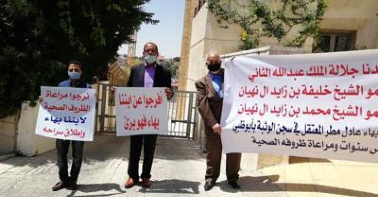 اعتصم عدد من عائلات مواطنين اردنيين معتقلين في الأمارات أمام سفارة الإماراتية في العاصمة الأردنية عمان صباح الخميس؛احتجاجا على الظروف الصحية لابنائهم في السجون الاماراتية. ونقلت عائلات المعتقلين عن
