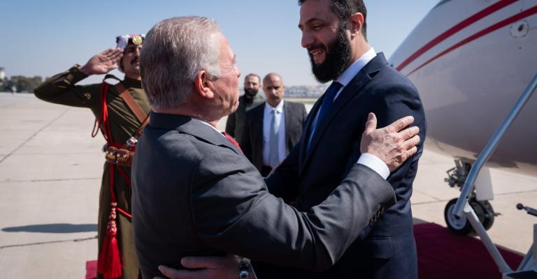 استقبل الملك عبدالله الثاني، الأربعاء، الرئيس السوري أحمد الشرع، لدى وصوله مطار ماركا في زيارة للمملكة. وكان في الاستقبال الأمير غازي بن محمد، كبير مستشاري الملك للشؤون الدينية والثقافية، المبعوث