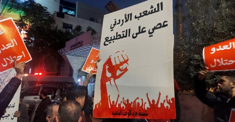اعتصمت الحملة الوطنية الاردنية لاسقاط اتفاقية الغاز مع الكيان الصيهوني #غازالعدواحتلال يوم الاربعاء امام وزارة الطاقة بمناسبة الذكرى السنوية الثامنة والعشرون لتوقيع معاهدة السلام مع اسرائيل المعروفة