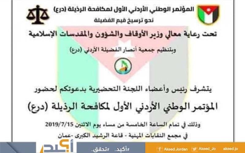 ويُذكر أنّ المؤتمر الذي يقام برعاية وزير الأوقاف والشؤون والمقدّسّات الإسلامية، يأتي بتنظيم من جمعية أنصار الفضيلة الأردني "درع"، والتي عرّفت عن نفسها على صفحتها "فيسبوك" بأنّها "جمعيّة سياسيّة قيميّة أخلاقيّة توعويّة تهدف إلى نشر الفضيلة ومُحاربة الرذيلة بطرق سلميّة قانونيّة شعبية".