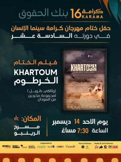 اختتام مهرجان كرامة لأفلام حقوق الإنسان في دورته السادسة عشرة بعرض فيلم "الخرطوم"