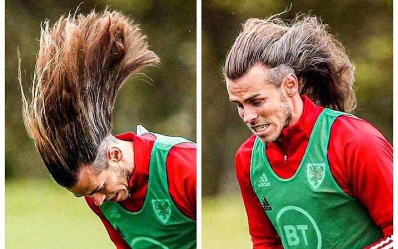 خطف النجم الويلزي غاريث بيل الأضواء في أثناء تواجده مع منتخب بلاده بشعر طويل.