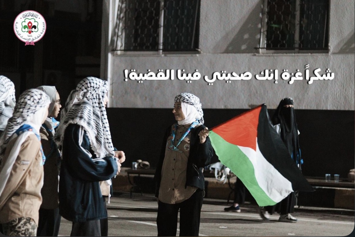 وتتابع أن جمعية الكشافة والمرشدات الأردنية قامت بإطلاق حملة "معكم" بالتنسيق مع الهيئة الخيرية الأردنية الهاشمية بتقديم الدعم باحتياجات الأهل في قطاع غزة، فتقديم الدعم للآخرين جزءٌ "مهم ومتأصل في عملنا ككشافة".