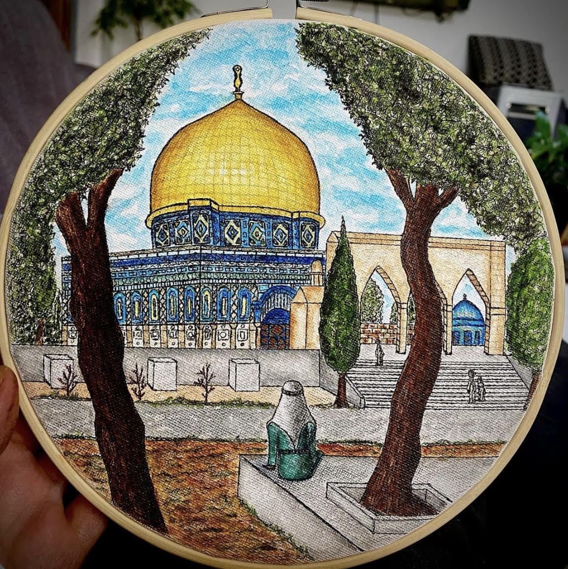 بيان سويد، فنانة وضعت بصمات واضحة في الكثير من أنواع الفنون باعتبار الفن "أسلوب حياة" وطريقًا لطرح القضايا بالجمال، فقد انشأت مؤخرًا مشروعًا لصناعة "ميداليات" لدمى ترتدي الثوب الفلسطيني للتعريف بالتراث عن طريق الأشغال اليدوية.