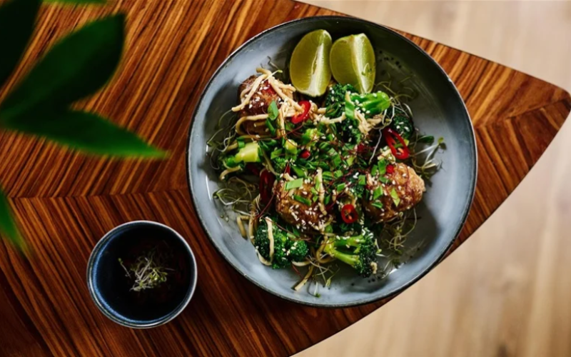 يُقدّم مع صلصة بسيطة من زيت الزيتون وخل التفاح والعسل.