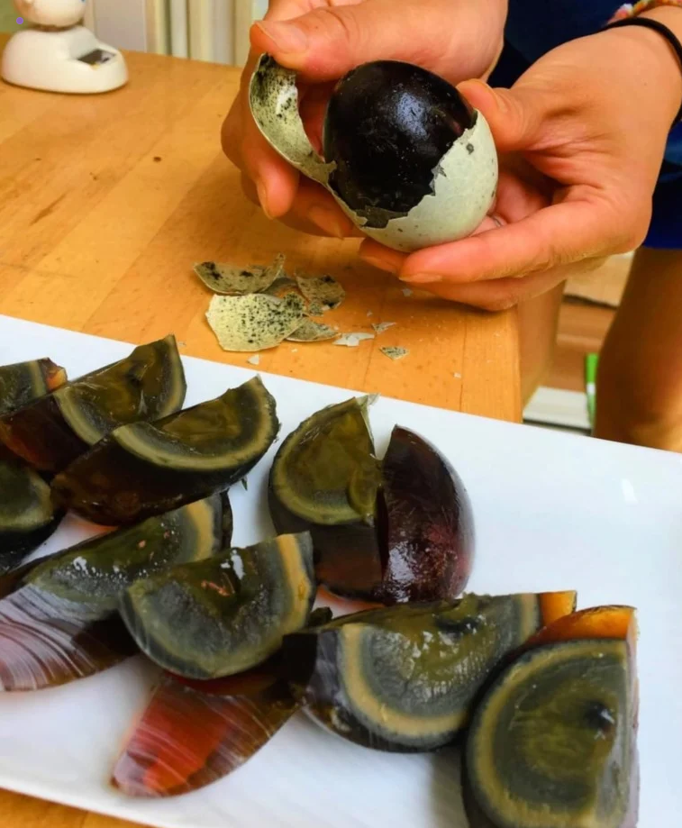 وتُعرف هذه البيضة باسم "البيضة المئوية" أو "بيضة القرن" (Pi dan)، ورغم مظهرها الداكن الذي يشبه البيض الفاسد، فإنها تعد من الأطعمة الشعبية في الصين منذ قرون طويلة، بل وتُستهلك بشهية كبيرة ضمن المائدة التقليدية.