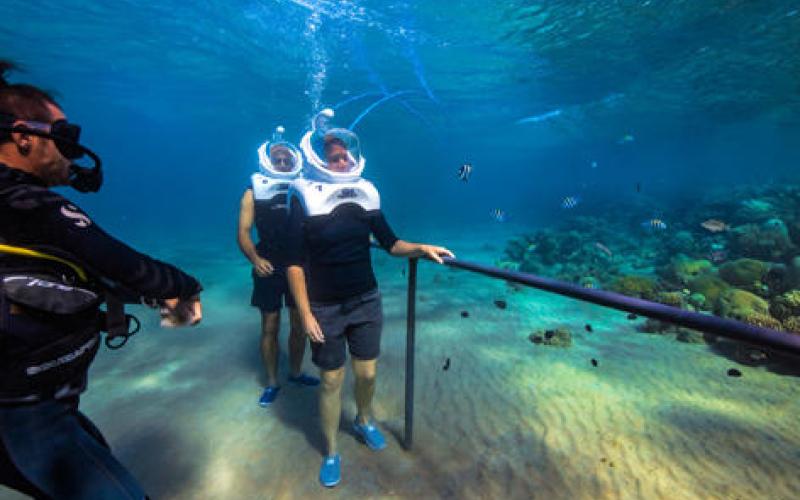 بدأت مجموعة فنادق لوكسوتيل/ فرع العقبة بالتعاون مع نادي الغوص الملكي توفير تجربة المشي تحت الماء داخل البحر.