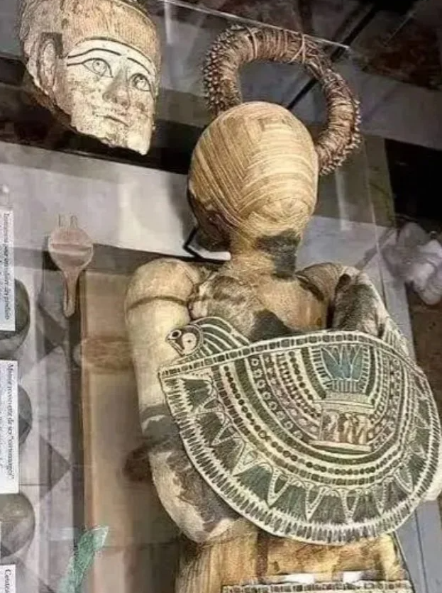 ووفقاً للمتحف الأمريكي للتاريخ الطبيعي، تتميز لفائف وجه المومياء بنقش فريد يشبه قاعدة الهرم، وهي سمة نادرة لم تُرَ في مومياوات أخرى.