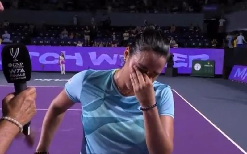 وقالت المصنفة السابعة عالميا قبل أن تجهش بالبكاء: "أنا سعيدة جدا بالفوز، لكنني لم أكن سعيدة جدا مؤخرا. الوضع في العالم لا يجعلني سعيدة أشعر وكأنني.. أنا آسفة".
