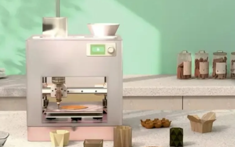 تستخدم الطابعة بعد ذلك نظام بثق حراري ثلاثي المحاور (نوع من الفوهات الروبوتية) لتشكيل العجينة إلى المنتج الذي تختاره، وعند الانتهاء، يمكنك فتح لوحة جانبية وجمع المنتج الجديد، كل ذلك بضغطة زر واحدة.