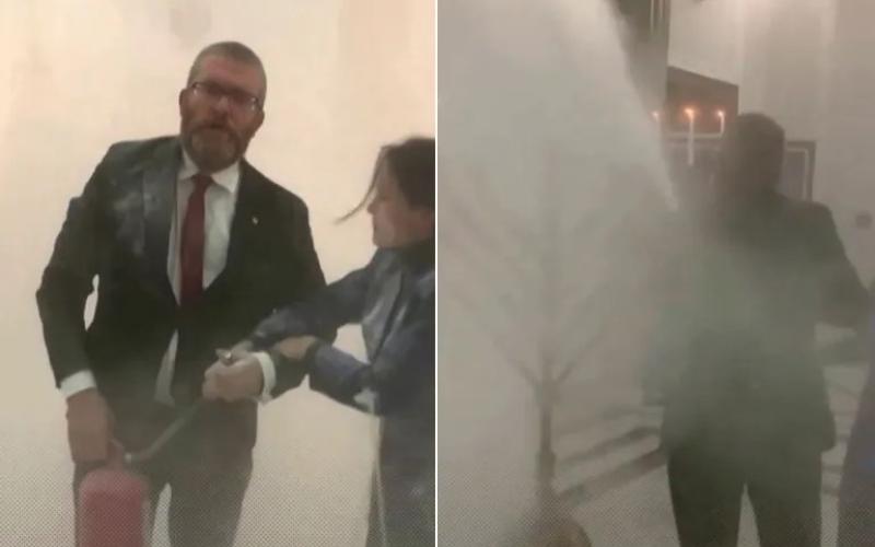 نائب بولندي يطفئ شموع "الأنوار" اليهودية في البرلمان بمطفأة حريق