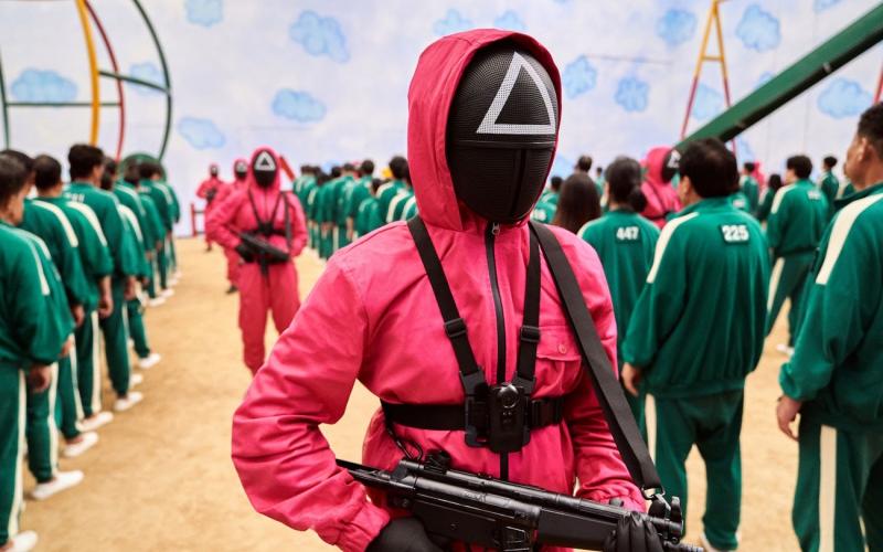 وفي (الضوء الأحمر.. الضوء الأخضر)، أولى ألعاب المسلسل، يتعرض اللاعبون لإطلاق نار إن لم يتوقفوا لدى سماع كلمة الضوء الأحمر.