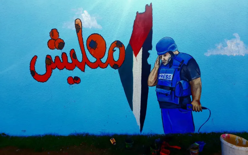 وائل الدحدوح على جدارية بإدلب السورية