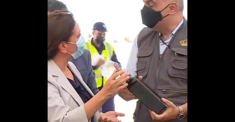 اهدت وزيرة الطاقة والثروة المعدنية المهندسة هالة زواتي، رئيس الوزراء بشر الخصاونة، زجاجة نفط، من إنتاج حقل حمزة. جاء ذلك خلال تدشين رئيس الوزراء مرحلة جديدة لتأهيل حقل حمزة النفطي ورفع طاقته الإنتاجية