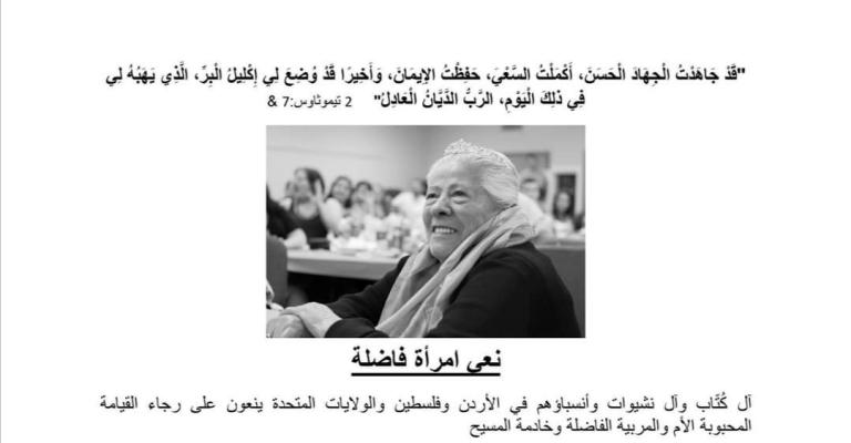توفيت السيدة فروسينا إبراهيم نشيوات، والدة الزميل الصحفي داود كتاب مدير عام شبكة الاعلام المجتمعي، عن عمر يناهز ٩٥ عاما. وسيشيع جثمان الفقيدة في مدينة فيلادلفيا في الولايات المتحدة الأمريكية يوم السبت