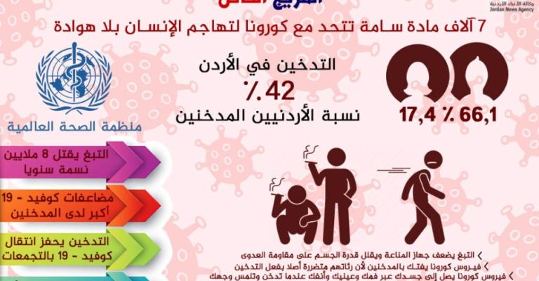 تفتك 7 آلاف مادة كيميائية سامة يحتويها دخان التبغ برئتي الإنسان، منها 70 مادة تسبب السرطان، ما يضيق الخناق على رئة المدخن وقدرتها على الصمود في وجه فيروس كورونا المستجد، عبر انسداد رئوي مزمن وانتفاخ