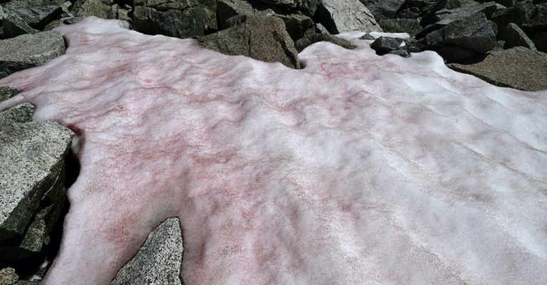 يحقق علماء في إيطاليا في ظاهرة غامضة تمثلت بظهور ثلج جليدي زهري في جبال الألب بسبب طحالب تسرّع تبعات التغير المناخي. ويدور جدل بشأن مصدر هذه الطحالب، غير أن الباحث في المجلس الوطني للبحوث في إيطاليا