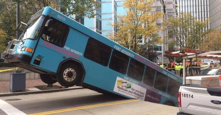كانت حافلة تسير بشكل اعتيادي في مسارها بمدينة بيتسبيرغ بولاية بنسلفانيا الأميركية، عندما وقع حادث غير اعتيادي لها، بحسب ما أظهرت صور. وأفادت وسائل إعلام أميركية، الاثنين، أن جزءا من الطريق انهار فجأة