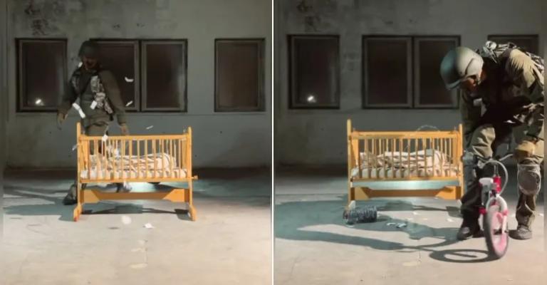 نشر الرسام البولندي إيغور دوبرولسكي مشهدا ساخرا جسّد من خلاله ممارسات الجيش الإسرائيلي في حربه على قطاع غزة، من خلال عمل فني أطلق عليه عنوان "الجيش الأكثر أخلاقية في العالم". في المشهد الساخر الذي