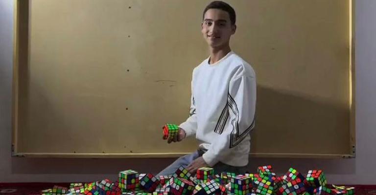 الفنان الأوزباكستاني حوسان ميرزا حبيبوف يبدع بلوحة مؤثرة عن غزة، حيث أراد التعبير عن أصوات الأبرياء في غزة فعبّر عنهم بلوحة تشكيلية بواسطة مكعبات روبيك وبطريقة إبداعية.