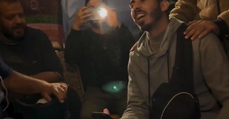تداول ناشطون على مواقع التواصل الاجتماعي مقطعا مصورا، يظهر عددا من الصحفيين في غزة وهم ينشدون "سوف نبقى هنا" وتجمع الإعلاميون بقطاع غزة، ومن بينهم مراسل الجزيرة وائل الدحدوح، في خيمة الصحفيين بمجمع