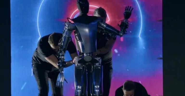 كشف الرئيس التنفيذي لشركة تسلا، إيلون ماسك، الجمعة، عن روبوته الشهير الشبيه بالبشر "أوبتيموس"، خلال فعالية "يوم الذكاء الاصطناعي" التي نظمتها شركة تصنيع السيارات الكهربائية. وقال الملياردير إن النشاط