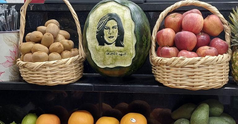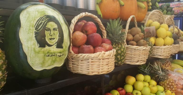 تضامن صاحب محل عصير بوسط البلد في عمان تضامن بطريقته الخاصة مع حادثة اغتيال شيرين ابو عاقلة من خلال رسم صورتها على جدار البطيخ. صاحب المحل اثناء رسم صورتها