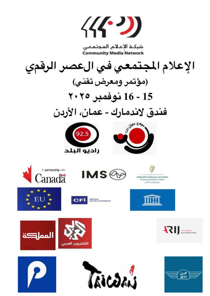 تنطلق يوم السبت 15 تشرين الثاني/نوفمبر 2025، أعمال مؤتمر "الإعلام المجتمعي في العصر الرقمي" الذي تنظمه شبكة الإعلام المجتمعي (CMN) في العاصمة الأردنية عمّان، احتفاءً بمرور 25 عامًا على تأسيس إذاعة "عمان نت"، أول إذاعة إلكترونية وإذاعة مجتمعية في العالم العربي. ويشارك في المؤتمر أكثر من 300 إعلامي وخبير وصحفي وناشط من الأردن والعالم، بينهم نحو 50 ضيفًا دوليًا يمثلون مؤسسات إعلامية ومنظمات مدنية وأكاديمية.