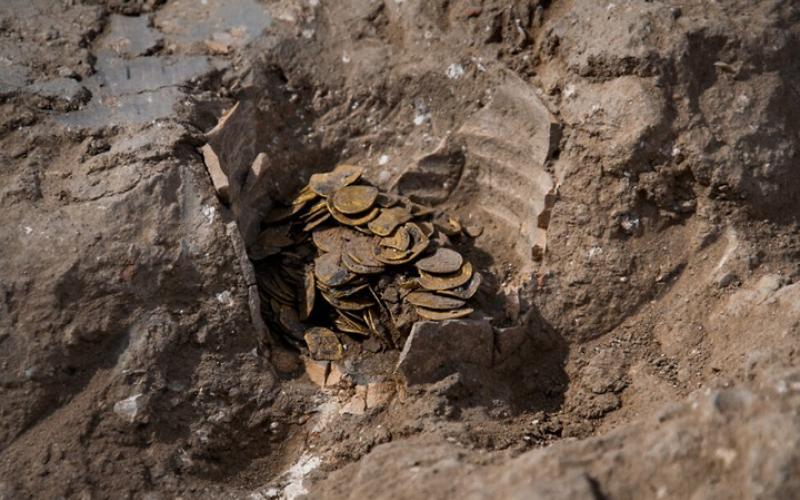 وأعلنت سلطة الآثار التابعة للاحتلال عن اكتشاف هذا "الكنز النادر، وهو يضم 425 قطعة نقدية ذهبية من فترة الخلافة العباسية، يعود تاريخها إلى ما يقرب من 1100 عام، وذلك خلال عملية تنقيب أثري في وسط البلاد (فلسطين)".