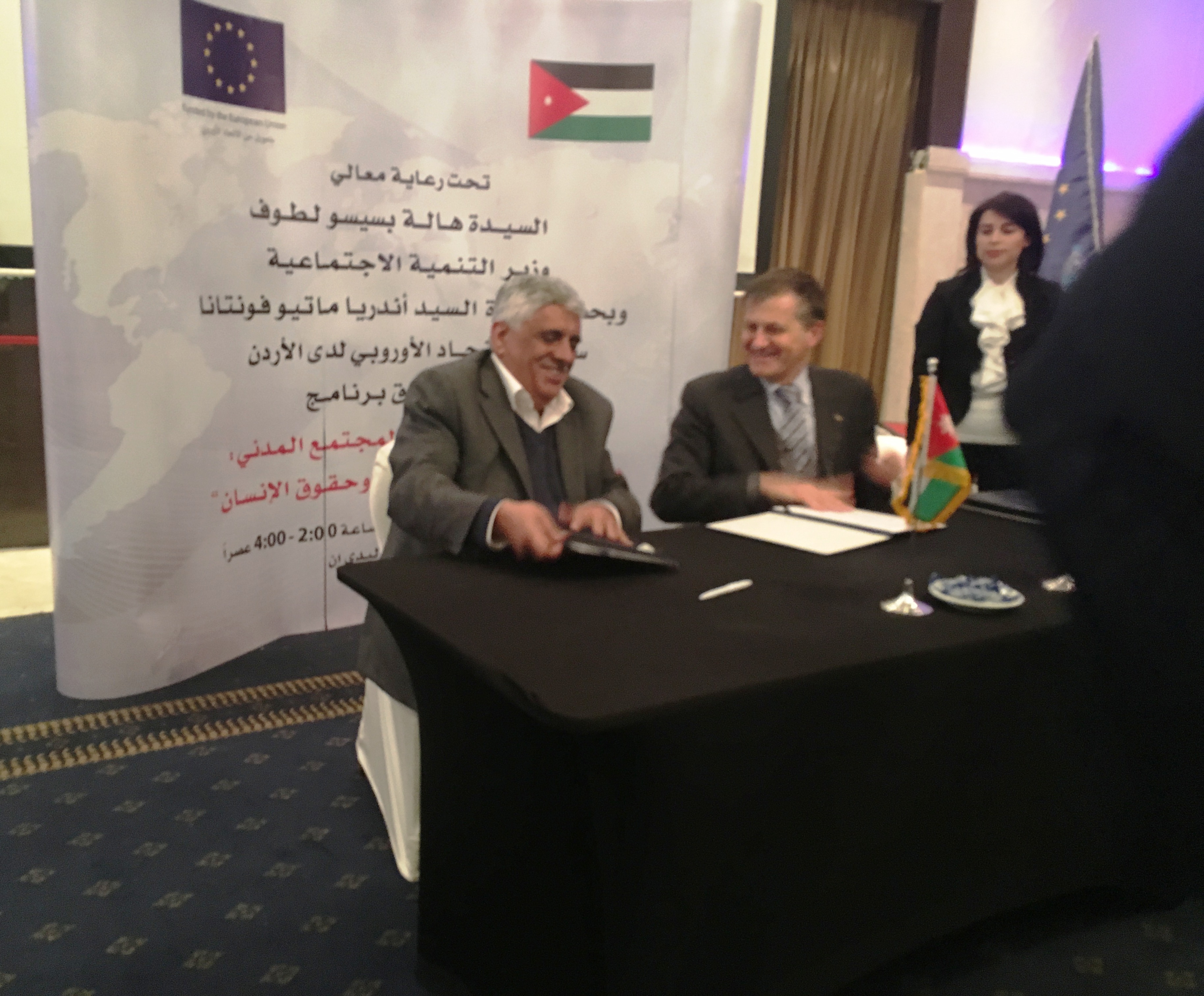 وقع سفير بعثة الاتحاد الأوروبي لدى الأردن اندريا ماتيو فونتانا، اليوم الاثنين، ثمانية اتفاقيات جديدة مع منظمات المجتمع المدني منها شبكة الإعلام المجتمعي. ويركز الدعم لمنظمات المجتمع المدني والذي يبلغ 2.76 مليون يورو على المساهمة في تعزيز حقوق الإنسان والتنمية المستدامة بحيث تصبح منظمات المجتمع المدني أكثر قوة وفعالية في مجال الإصلاح السياسي والدفاع عن حقوق الإنسان، فضلا عن تمكينهم من الانخراط في تنفيذ الأهداف التنموية والأولويات الوطنية. ويقول داود كتاب مدير عام شبكة الاعلام المجتمعي، إن هدف المشروع الذي سيستمر ثلاث سنوات زيادة الوعي في موضوع الإعلام المجتمعي وتوفير البيئة الحاضنة للإعلام يملكه ويديره المجتمع المحلي قائلا "سنسعى من خلال حملات كسب التاييد وورشات عمل ومؤتمرات وبرامج إذاعية ومنح مؤسسات مجتمعية لدعم الاعلام المجتمعي بكافة ألوانه." وستتعاون الشبكة في المشروع مع مركز البحوث والمعلومات في مؤسسة الملك حسين وجمعية معهد تضامن النساء الاردني ومؤسسة امارك الدولية وجمعية حلول الاعلام المجتمعي البريطانية. هذا وقد أكد السفير الاوروبي فونتانا أن هذا المنح جاءت في إطار التزام الاتحاد الأوروبي نحو دعم المجتمع والشركة المستمرة مع المجتمع الاردني. وقد اشارت مديرة جمعية النساء العربيات ليلى نفاع أن المجتمع المدني الاردني يحظى باحترام وتقدير المنظمات الدولية والهيئات المانحة وبفضل ادائه المتميز اذ انه أصبح وسيطا قادرا على إحداث التغيير بين السكان والمجتمعات كما وانتقدت استمرار التمييز ضد أبناء الأردنيات في تقديم الجنسية لهم في حين يتم توفير الجنسية للمستثمرين غير الاردنيين. وقالت ان الاتفاقيات الدولية من شأنها تعزيز مجتمع كمدني قوي ووسيط قادر على ضمان وتحقيق حقوق الإنسان والحياة الكريمة لجميع المواطنين في مختلف منا\طق الأردن وخاصة النائية. فالأنظار تتجه الآن في هذه الأوقات الصعبة نحو المجتمع المدني لما له من دور مهم في التنمية خاصة أنه كان لسنوات شريكا في التنمية ويحظى باحترام. وكان الأمين العام لوزارة التنمية الاجتماعية عمر حمزة، أكد في كلمة له خلال حفل التوقيع، سعي الحكومة وجهودها في تعزيز مفاهيم حقوق الإنسان وسيادة القانون والتوعية بها لجميع مكونات وفئات المجتمع وعلى وجه الخصوص الفئات التي قد تتعرض حقوقهم للانتهاك ومنها المرأة وذوي الإعاقة، مستمدة هذا النهج من مقولة جلالة الملك عبدالله الثاني: لا إصلاح بدون احترام الحقوق وصون الحريات. من جهته أشار المنسق الحكومي لحقوق الإنسان باسل الطراونة الى التحالفات التي تقودها الحكومة سواء على المستوى الوطني والمستوى المحلي والإقليمي والدولي من أجل إعلاء من منظومة حقوق الإنسان في المملكة. وقال الطراونة ان هناك ارادة سياسية حقيقة لتعزيز الشراكة بين الحكومة وبين مؤسسات المجتمع المدني لتحقيق الأفضل للمواطن الأردني ."نحن جديين بتنفيذ مراحل الخطة الوطنية لحقوق الإنسان ونعمل جاهدين على ذلك والحكومة بكافة أذرعها تبني شراكات حقيقية مع مختلف مؤسسات المجتمع المدني لتحقيق هذا الهدف." واشار الى ان الحكومة وضعت خطة حقوق الإنسان ستساهم بشكل رئيس في تعزيز حالة حقوق الإنسان وترسيخها في المملكة وذلك كجزء من برنامج عمل الحكومة، لافتا الى توجيهات جلالة الملك في كتاب التكليف السامي للحكومة بضرورة سيادة القانون والعدالة وبناء وترسيخ منظومة متكاملة لحقوق الإنسان توائم بين الحريات والمسؤوليات الوطنية مستندة في ذلك على التشريعات والسياسات والممارسات الفضلى لبناء شراكات هادفة ومتقدمة مع الأطراف المعنية. وستنفذ المنح الثمانية الجديدة على فترات زمنية تمتد لثلاث سنوات حيث ستركز أولويات على الحق في المحاكمة العادلة وسيادة القانون وحرية التعبير والرأي وحرية وسائل الإعلام والتنمية المحلية واللامركزية والشباب وتمكين المرأة.