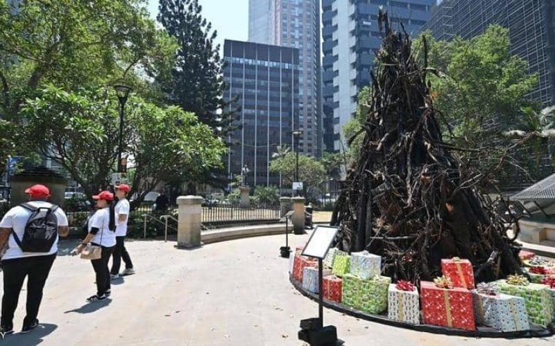 وضعت مدينة سيدني الأسترالية، شجرة عيد ميلاد مصنوعة من الأغصان المتفحمة وغيرها من حطام حرائق الغابات في حي الأعمال بوسط المدينة للتذكرة بالحرائق القاتلة التي اجتاحت مساحات كبيرة من البلاد.