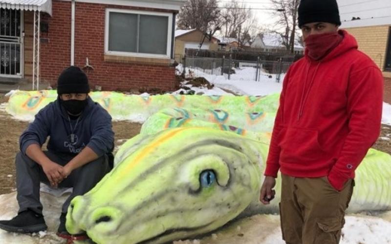 عائلة أمريكية تتفرغ 10 ساعات لتصنع ثعبانا من الثلج (شاهد)