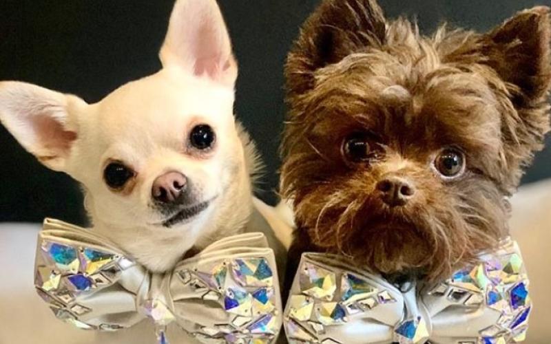 وعادة ما يحظى الكلبان، "روميو" (ثلاث سنوات) و"ريغي" (أربع سنوات)، بملابس مصنعة من الكشمير والحرير والمطرزة بكريستال من ماركة "سواروفسكي" التجارية، بقيمة لا تقل عن 360 دولارا للقطعة الواحدة.