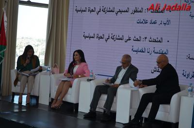 هذا وتضمن المؤتمر ثلاث جلسات، كانت الأولى بعنوان "الدين والمشاركة السياسيّة في الأردن"، أدارتها الإعلاميّة الزميلة شهد الطراونة، وتحدّث بها الأستاذ في كلية الشريعة بجامعة آل البيت الدكتور عامر الحافي حول "المنظور الإسلامي للمشاركة السياسيّة"، والأمين العام للنيابة اللاتينيّة في الأردن الأب عماد علامات حول "المنظور المسيحي للمشاركة السياسيّة"، والامين العام لمجلس الكنائس الاردني الاب ابراهيم دبور ، حول موقف الكنيسة الداعم للمشاركة السياسية، والإعلاميّة المتخصصّة في السياسات الانتخابيّة والبرلمانيّة رنا خمايسة حول "الحثّ على المشاركة في الحياة السياسيّة".