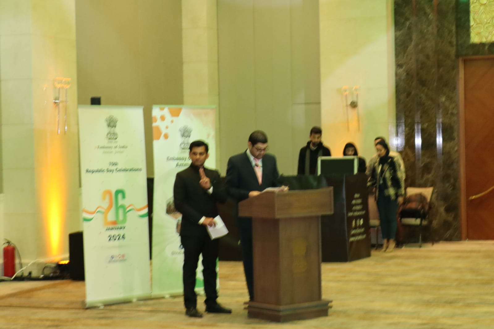 عمان نت - احتفلت السفارة الهندية اليوم الجمعة في الأردن، باليوم الجمهوري الهندي الـ75 ، وتخلل الاحتفال كلمة ا سعادة السفير الهندي "أنور حليم" قال فيها إن هذا اليوم هو يوم عظيم ومميز للهند ، مشيراً إلى ازدهار العلاقة بين الأردن والهند ومتانة الشراكة بين البلدين حول العديد من القضايا،