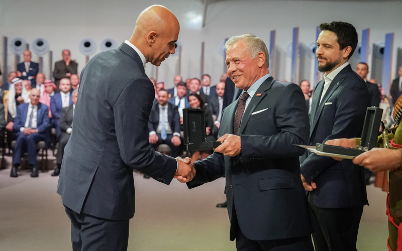 وجاء هذا التكريم الملكي للشركة خلال لقاء جلالته بحضور سمو الأمير الحسين بن عبدالله الثاني، ولي العهد، وجهاء وممثلين عن أبناء محافظة العاصمة وعدد من ممثلي الشركات والمؤسسات الوطنية، في الديوان الملكي الهاشمي، ضمن سلسلة اللقاءات الملكية هذا العام في كافة محافظات المملكة بمناسبة اليوبيل الفضي لتولي جلالته سلطاته الدستورية.