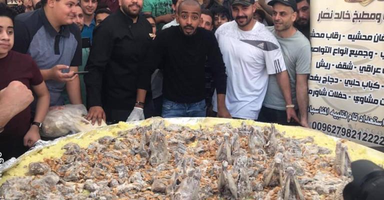 أعد مطعم أردني في عمان أكبر سدر منسف باستخدام 11 خروفاً و55 كيلو أرز و30 كيلو جميد أمس الجمعة. وقال صاحب المطعم إن الحضور فاقوا المتوقع حيث تجاوز عددهم 200 شخص بينما كانت سدر المنسف بقطر 3 متر يكفي