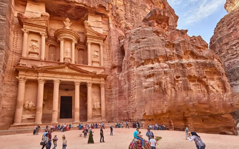 In southern Jordan, Petra lies hidden among rose-colored mountains, a masterpiece shaped by both time and human ingenuity. As you pass through the narrow Siq, the view suddenly opens onto the Treasury in a silent, breathtaking moment. Petra is not a single monument, but an entire city of temples, tombs, and theaters. Every step tells the story of a civilization that mastered the art of adapting to desert life and water scarcity. Visiting Petra requires time and long walks, but every minute is well worth it.