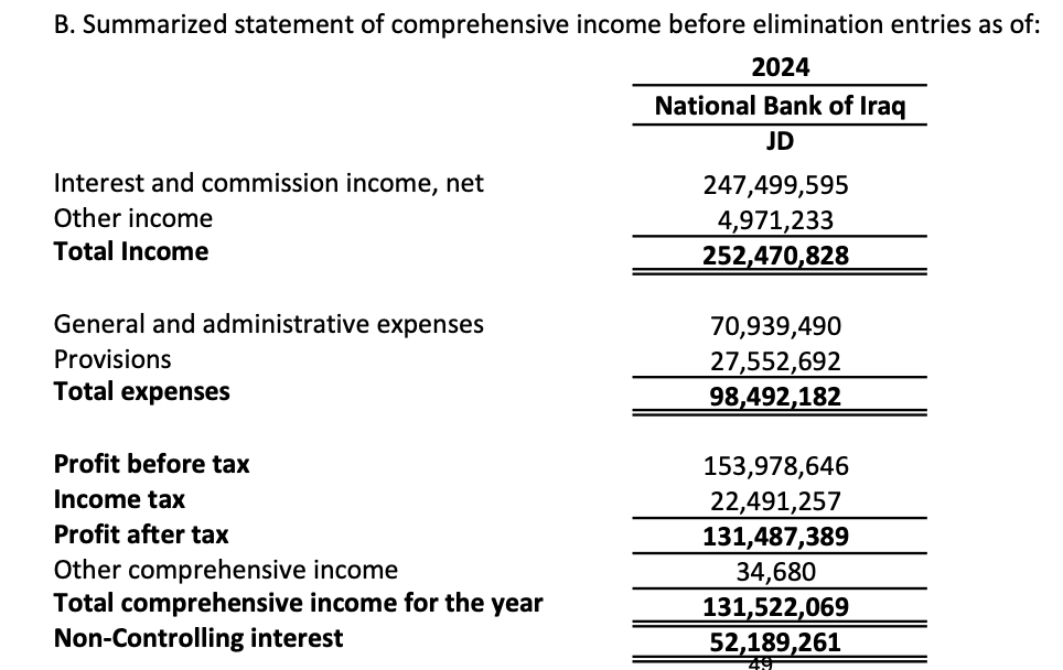 This basically means that Capital Bank Jordan alone (without NBI) realised a net income of 402 - 252 = 150 million JODs. This number is much lower than that of its Iraqi counterpart despite Capital having absorbed 2 local banks in the last few years.