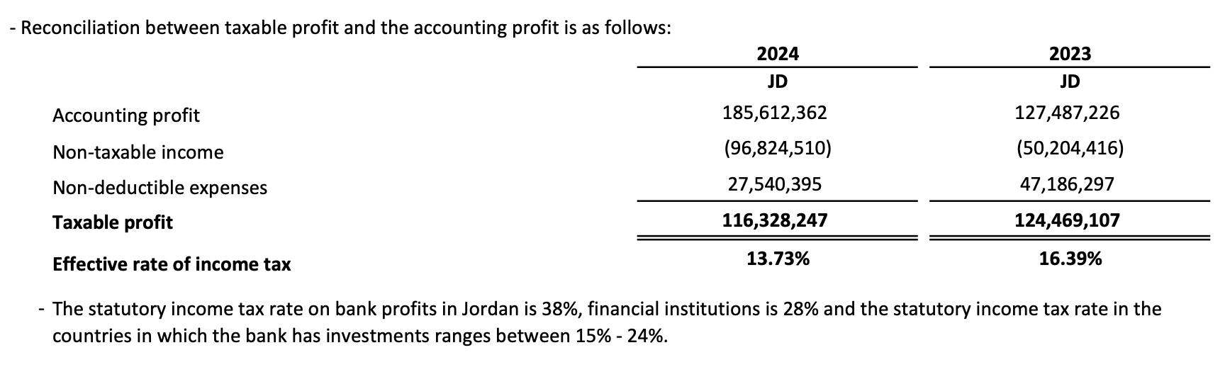 NBI made a profit before tax of ~154 million JODs (and paid 22.5 million JODs of income tax - at the correct rate of 15%). Looking at the section 21 of the statement below, we can clearly see the reconciliation of accounting profit and tax profit with the non-taxable income of 96 million JODs which is basically 61.85% of the 154 million profit made by NBI. Therefore, there was no wrongdoing done by anyone.