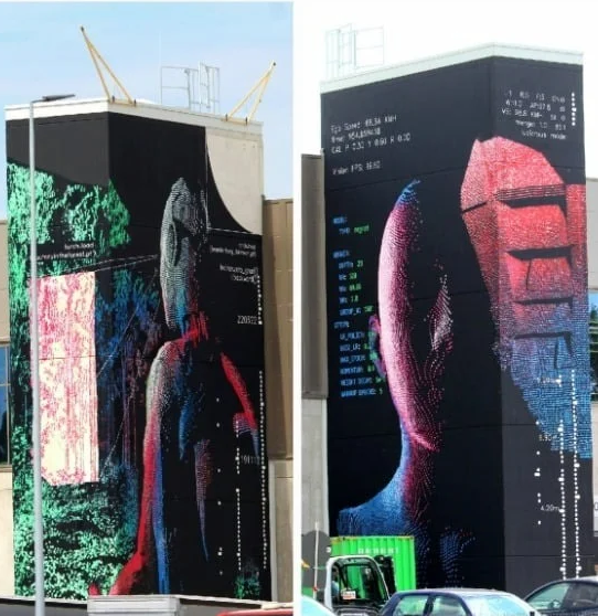 المشروع بدأ بمشاركة فنانين محليين، لكن سرعان ما استعانت الشركة بروبوت جداري قادر على طباعة لوحات رقمية باستخدام 12 علبة طلاء وأكثر من مليون نقطة على الجدار الواحد. وقال مبتكره ميكيل جوالا إن الروبوت يستعين بآلية رفع خاصة ومراوح دقيقة لضمان الدقة في الرسم.