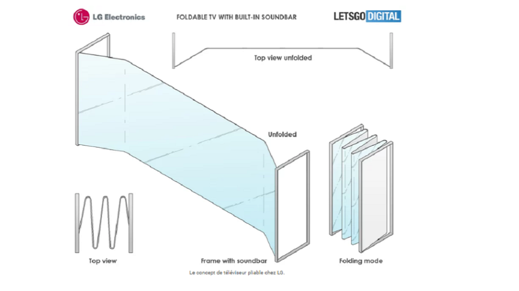 وتصف براءة الاختراع المقدمة من قبل ” LG Electronics ” جهاز تلفزيون يتألف من لوحتين يمكن أن تطوى إحداهما حول الأخرى وبالتالي دمج لوحة Oled المطوية في عدة أماكن مخصصة ومحددة.