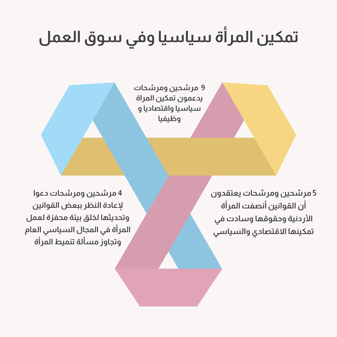 9 مرشحين ومرشحات يدعمون تمكين المرأة سياسيا واقتصاديا ووظيفيا.
