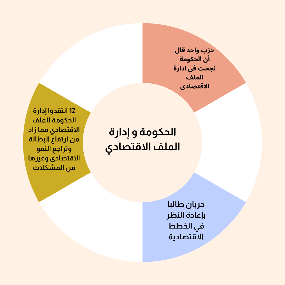 12 انتقدوا إدارة الحكومة للملف الاقتصادي مما زاد من ارتفاع البطالة وتراجع النمو الاقتصادي وغيرها من المشكلات الأخرى.