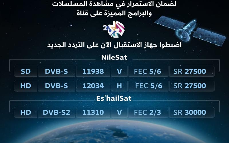اعتبارًا من اليوم، يُرجى من المشاهدين الكرام ضبط أجهزة الاستقبال على الترددات الجديدة التالية: