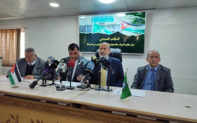 فيما أكد الأمين العام للحزب المهندس مراد العضايلة في كلمة له خلال المؤتمر الصحفي أنه لا نجاح للعمل السياسي والديمقراطية وتحديث المنظومة السياسية دون أحزاب فيما لا يمكن أن تنجح الأحزاب بدون مناخ للحريات العامة ووقف التدخل في الحياة المدنية والسياسية والحزبية والنقابية، ووقف التضييق على كوادر الأحزاب والتي وصلت لاستدعاء النساء، مضيفاً " ما نراه من إرتفاع حجم التطرف لدى الكيان الصهيوني والحكومة الفاشية لدى الاحتلال يتطلب الرد عليه بحالة ديمقراطية حقيقية ومناخ حقيقي من الحريات وتمكين الشعب من المشاركة في صنع القرار".