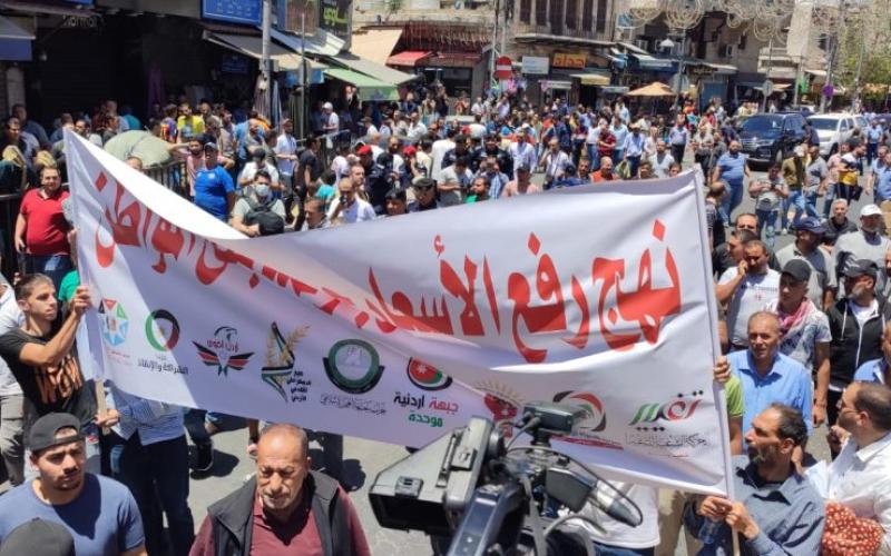 وندد المشاركون في المسيرة، بسياسة رفع الأسعار وآخرها رفع أسعار المحروقات بشكل كبير، مؤكدين عدم قدرة المواطنين على تحمل مزيدا من والأعباء التي جاءت بسبب فشل الحكومات المتعاقبة في معالجة الأزمات الاقتصادية.