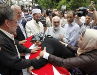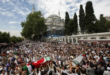 وحضر الآلاف من الأتراك الغاضبين مراسم تشييع الناشطين التسعة التي بدأت بصلاة الجنازة في مسجد الفاتح في إسطنبول، فيما اتهم نائب رئيس الوزراء التركي بولند ارينج في كلمة ألقاها خلال تشييع الجنازة إسرائيل بالقرصنة وقال إن الناشطين واجهوا البربرية والتعسف ولكنهم عادوا بفخر.